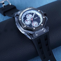 Özel üç gözler paslanmaz çelik Quartz saat suya dayanıklı arama penceresi şık su geçirmez silikon moda iş