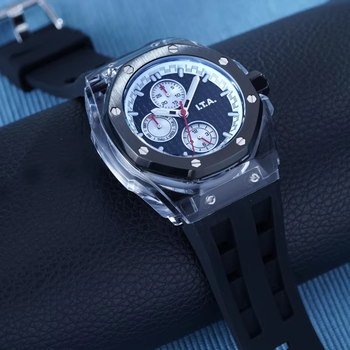 Custom Charm Design cassa in acciaio inox orologio al quarzo tre occhi cinturino in Silicone impermeabile resistente all'acqua quadrante finestra elegante