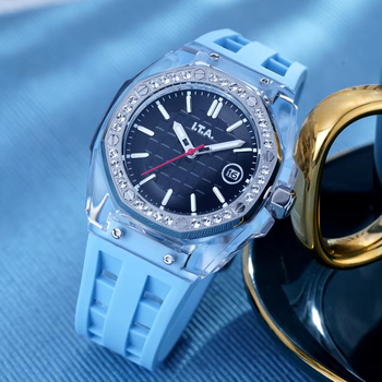 OEM fornitore di lusso diamante in rilievo orologio al quarzo per le signore affari quotidiano in acciaio inox cassa in Silicone fascia di vetro semplice